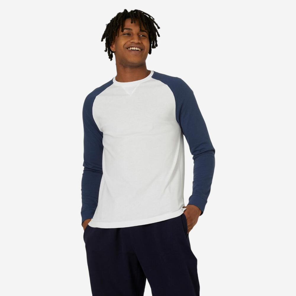 With bi-coloured long sleeves and a longer torso than our standard straight cut, this T-shirt is a timeless classic with a distinctive style. It'll last through your fast-paced daily life. From workouts to the office to evenings with friends or family, you can have both style and comfort.
