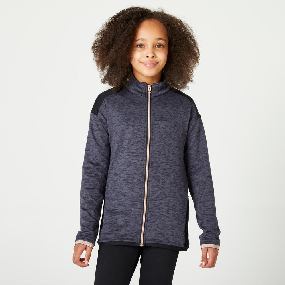 Kids' breathable synthetic tracksuit s500 - black/dark grey marl
