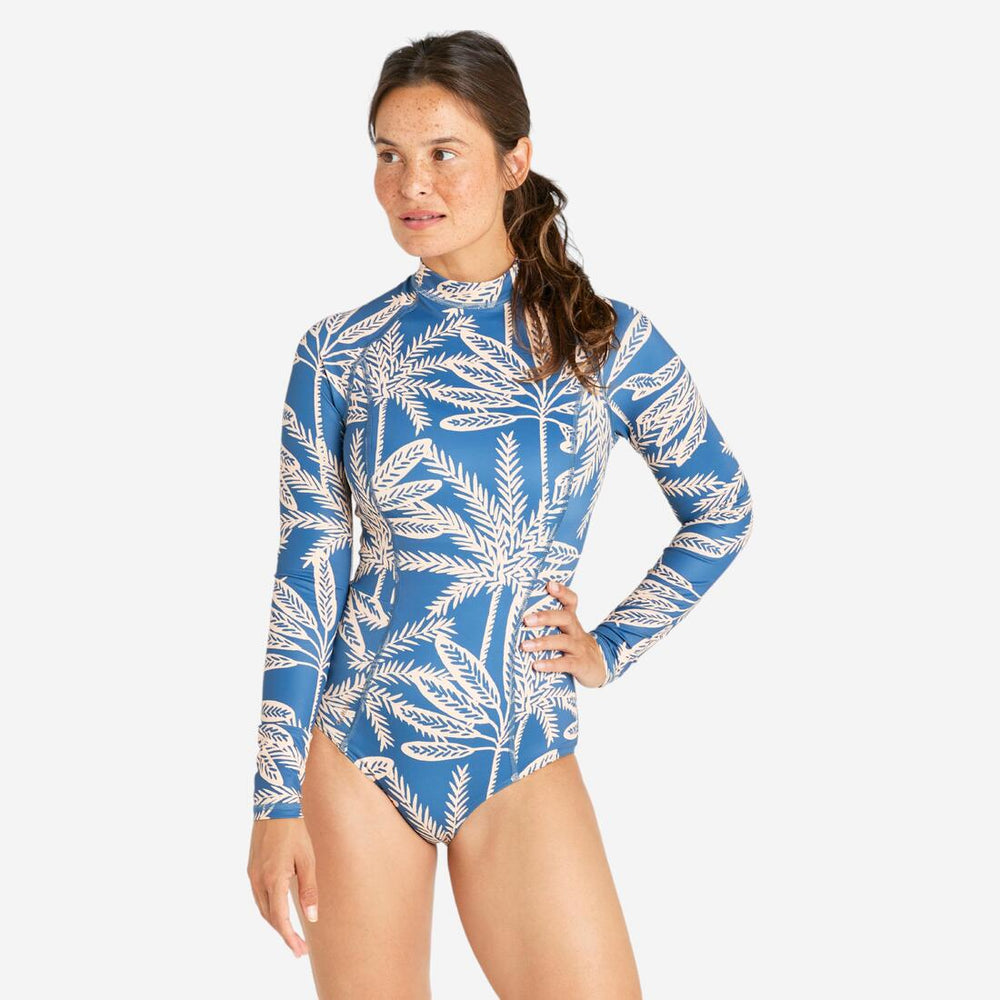 This women’s 1-piece swimsuit with long sleeves and a back zip stays firmly in place in large waves and is suitable for all water sports, and especially surfing.
