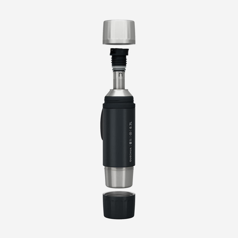 0.7 l insulated stainless steel bottle with tea filter, for hiking and camping