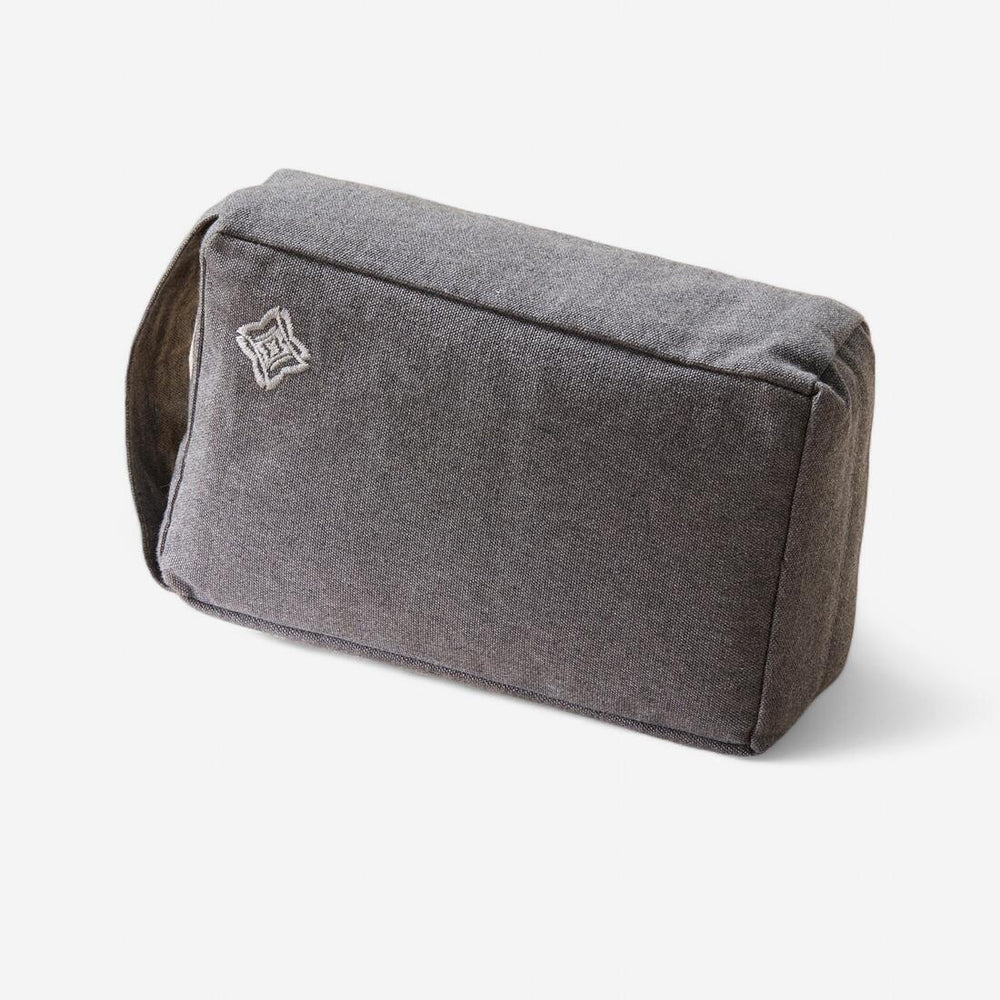 Opt for foam or fabric bricks when doing seated asanas and heart openers. This fabric brick can also be used as a neck cushion for final relaxation.