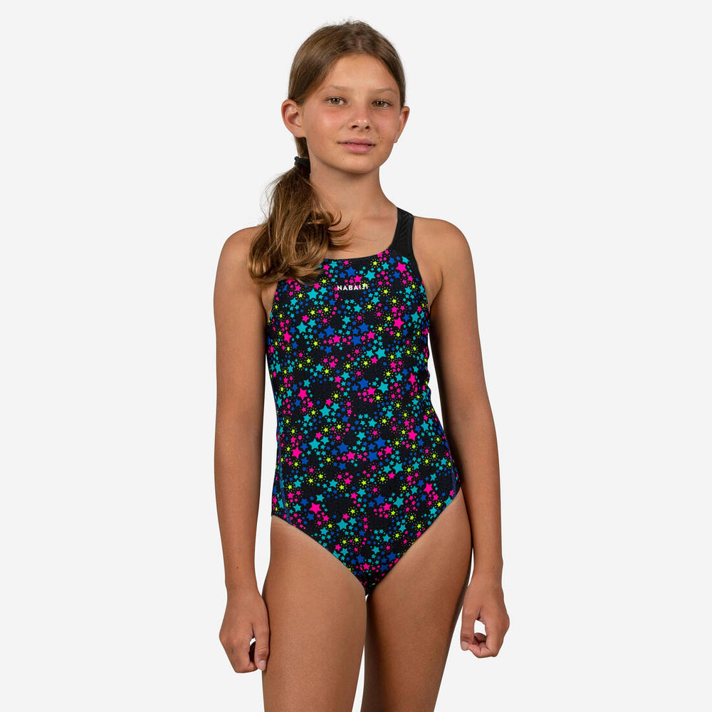 Designed for young swimmers who train regularly, this 1-piece girls’ swimsuit guarantees perfect stability for swimming and diving.