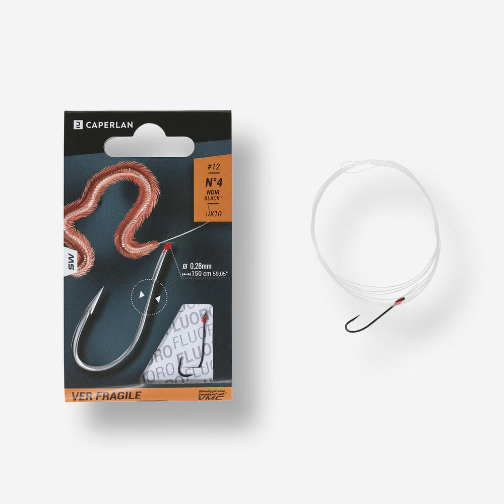 10 hooks to line for baiting blackworms - Each hook is attached to the line with a 150 cm fluorocarbon snood