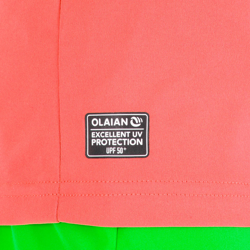 Children's UV-resistant short sleeve t-shirt for protecting against the sun, even in the water, and limiting irritations when in contact with the board.Looser cut makes it easy to put on and take off.